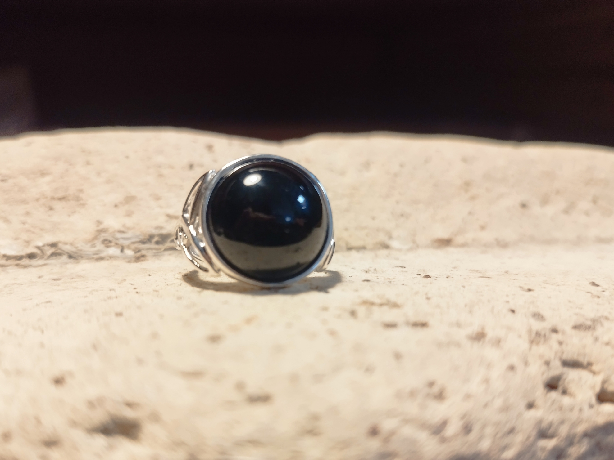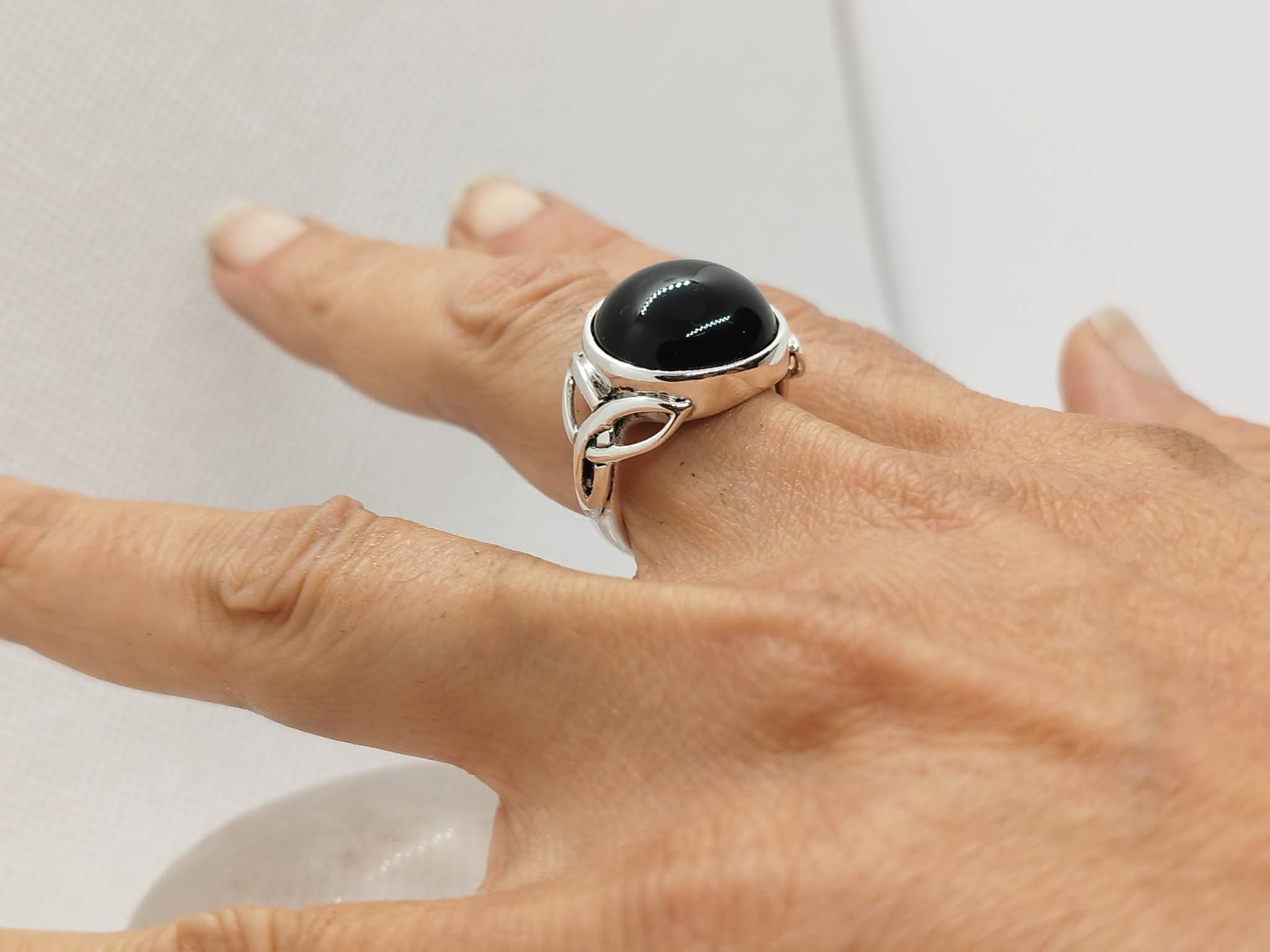 Anello Triskel con Onice Tonda – Argento 925, Fatto a Mano