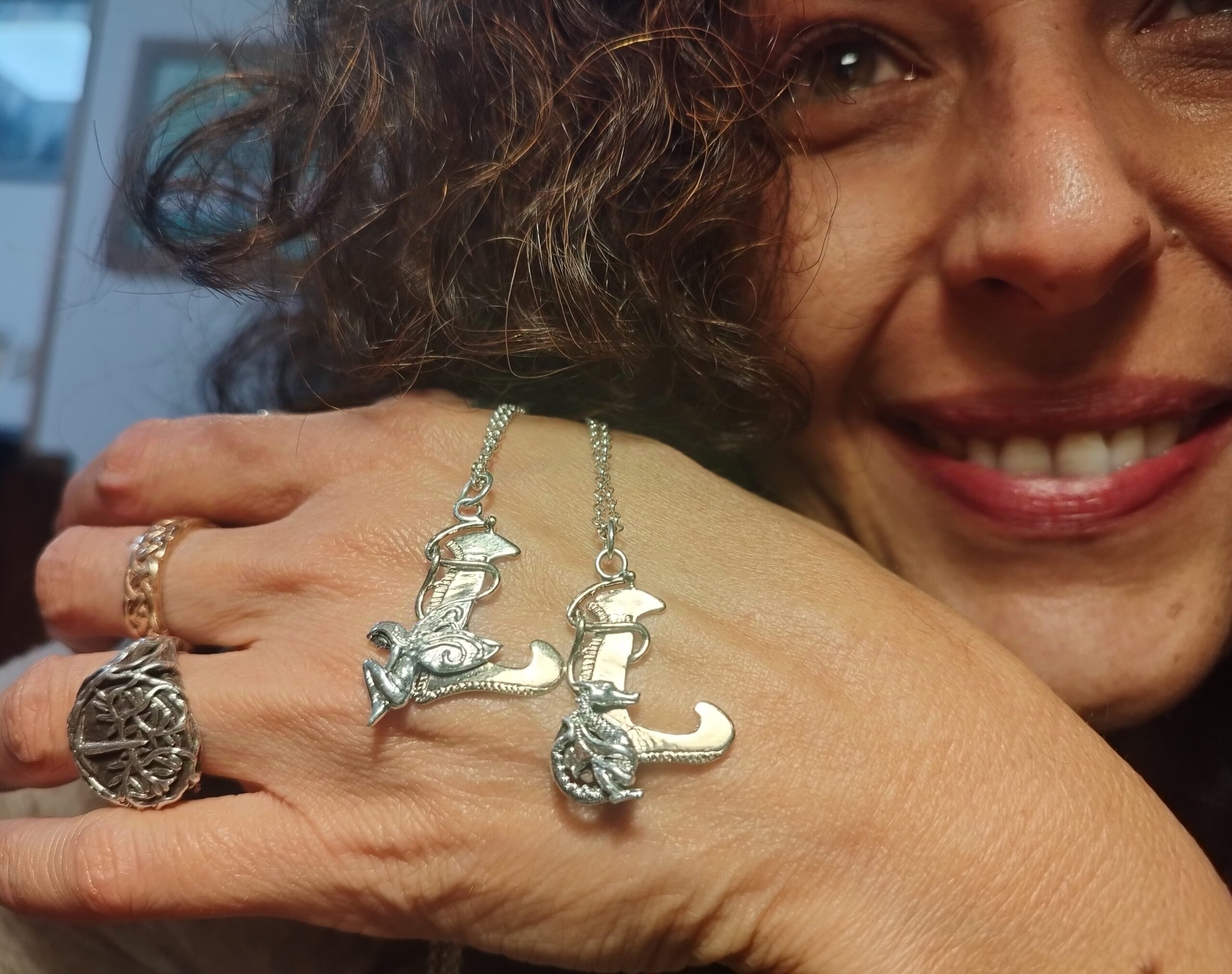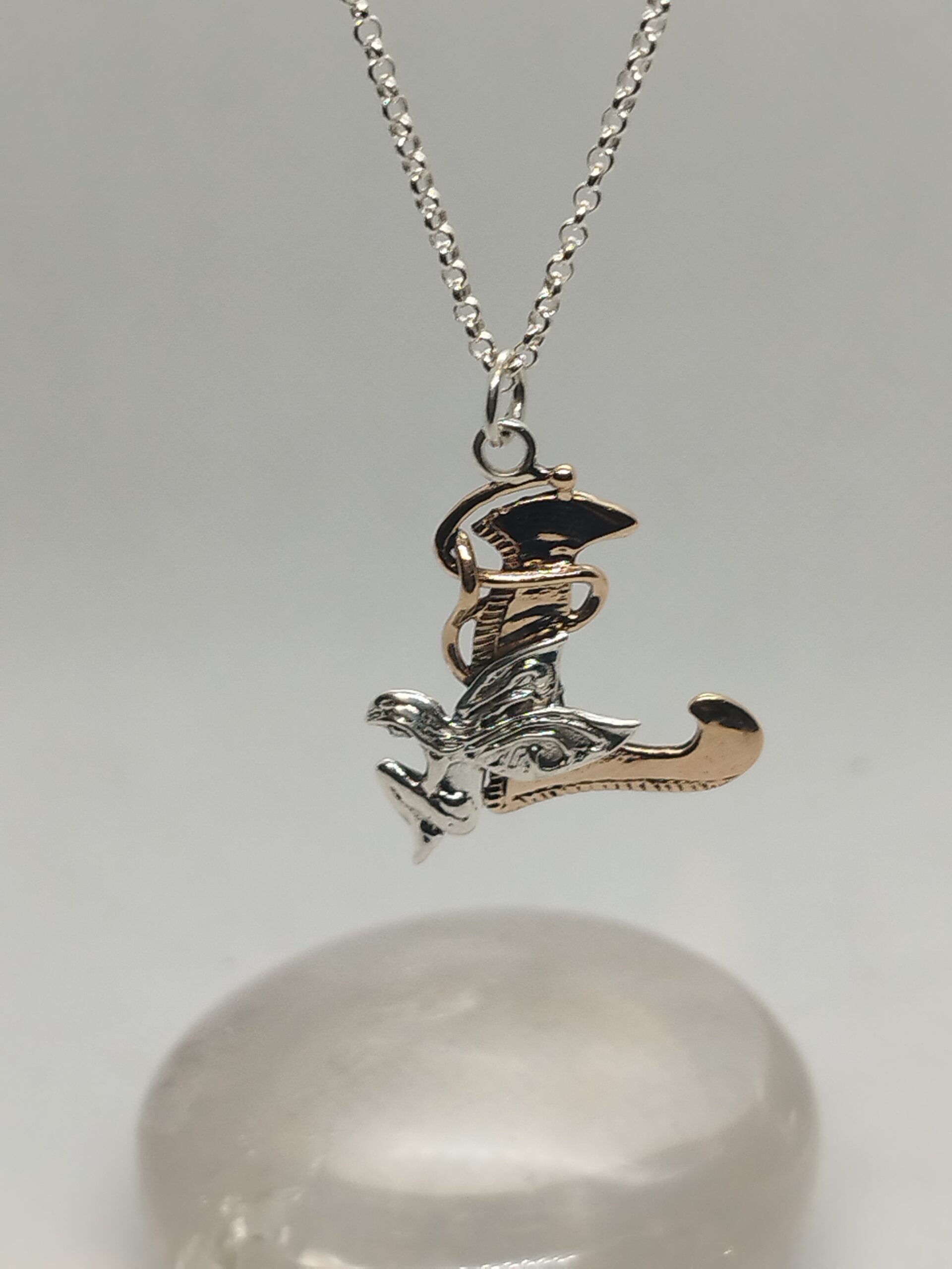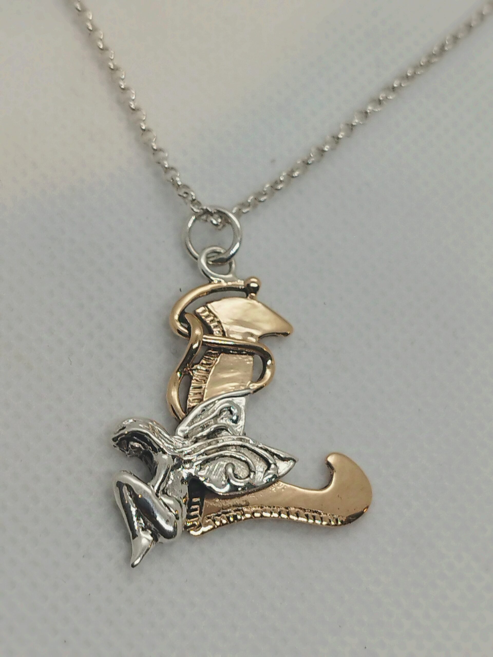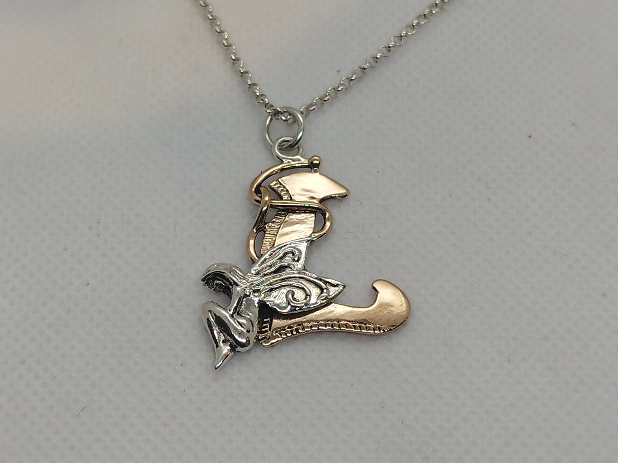 Pendente realizzato interamente a mano, microscultura artistica. Bronzo rosa anallergico e argento 925. Potete scegliere il soggetto che più vi piace, Drago o Fata da inserire sulla lettera.